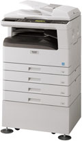 COPIATOR DIGITAL CU IMPRIMANTA SI SCANNER ALB/NEGRU Echipamentul are standard functiile de copiere, imprimare si scanare locala, iar ca accesorii optionale se pot adauga: alimentatorul automat de originale si tavi suplimnetare de alimentare cu hartie.
